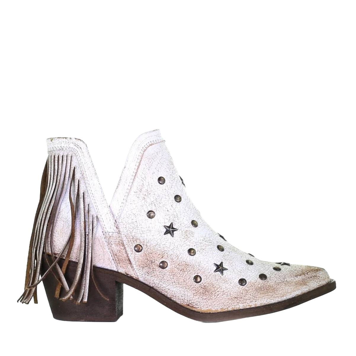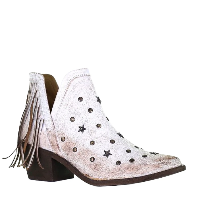 Circle G By Corral Ladies White Studs & Fringe Ankle Booties Q0189
