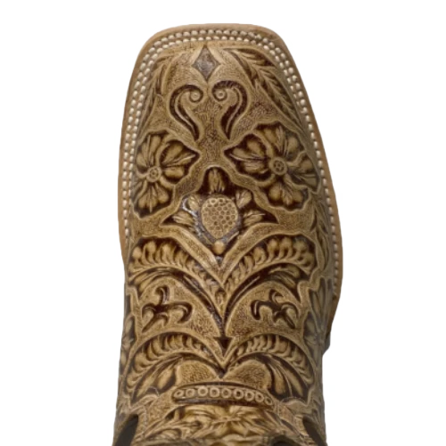 Cowtown® Ladies Oryx Floral Tooled Brown & Tan Square Toe Boots Q452
